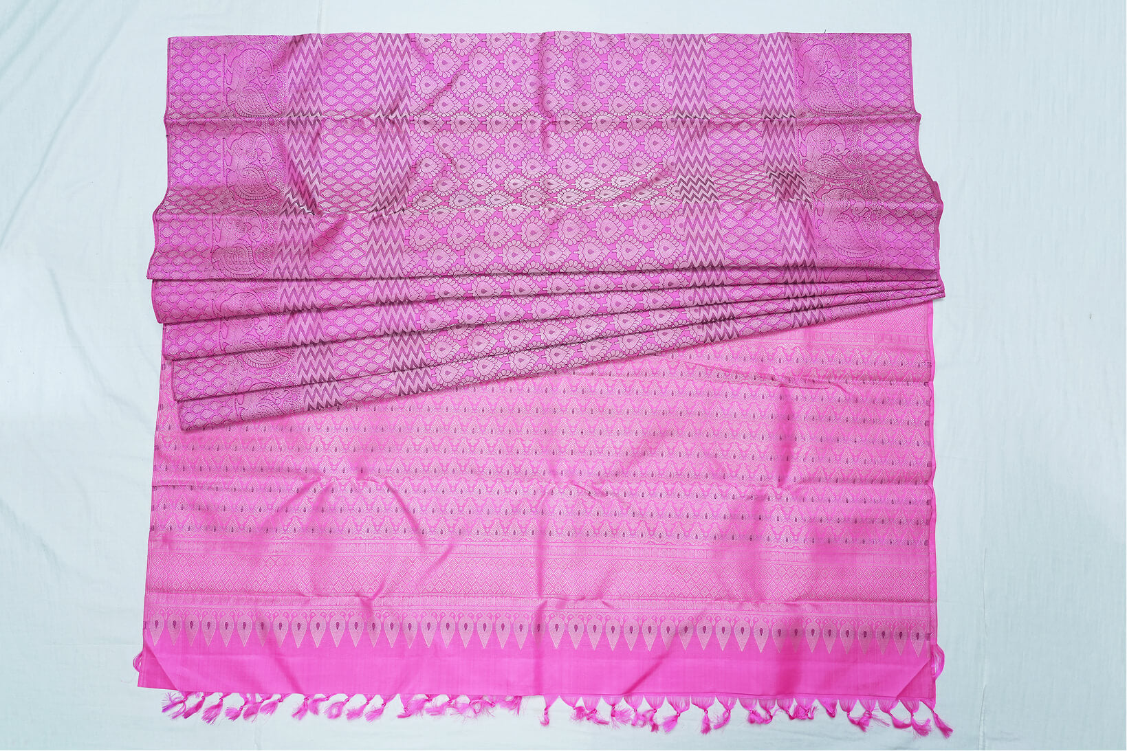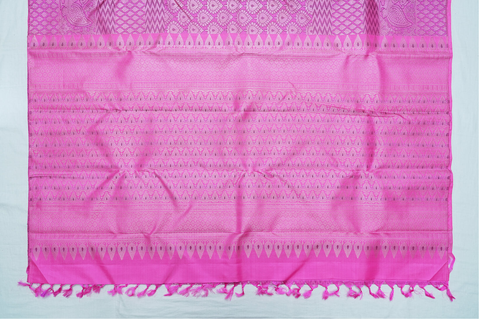 Kanchipuram Pure Silk Saree – Bright Pink with Floral Design