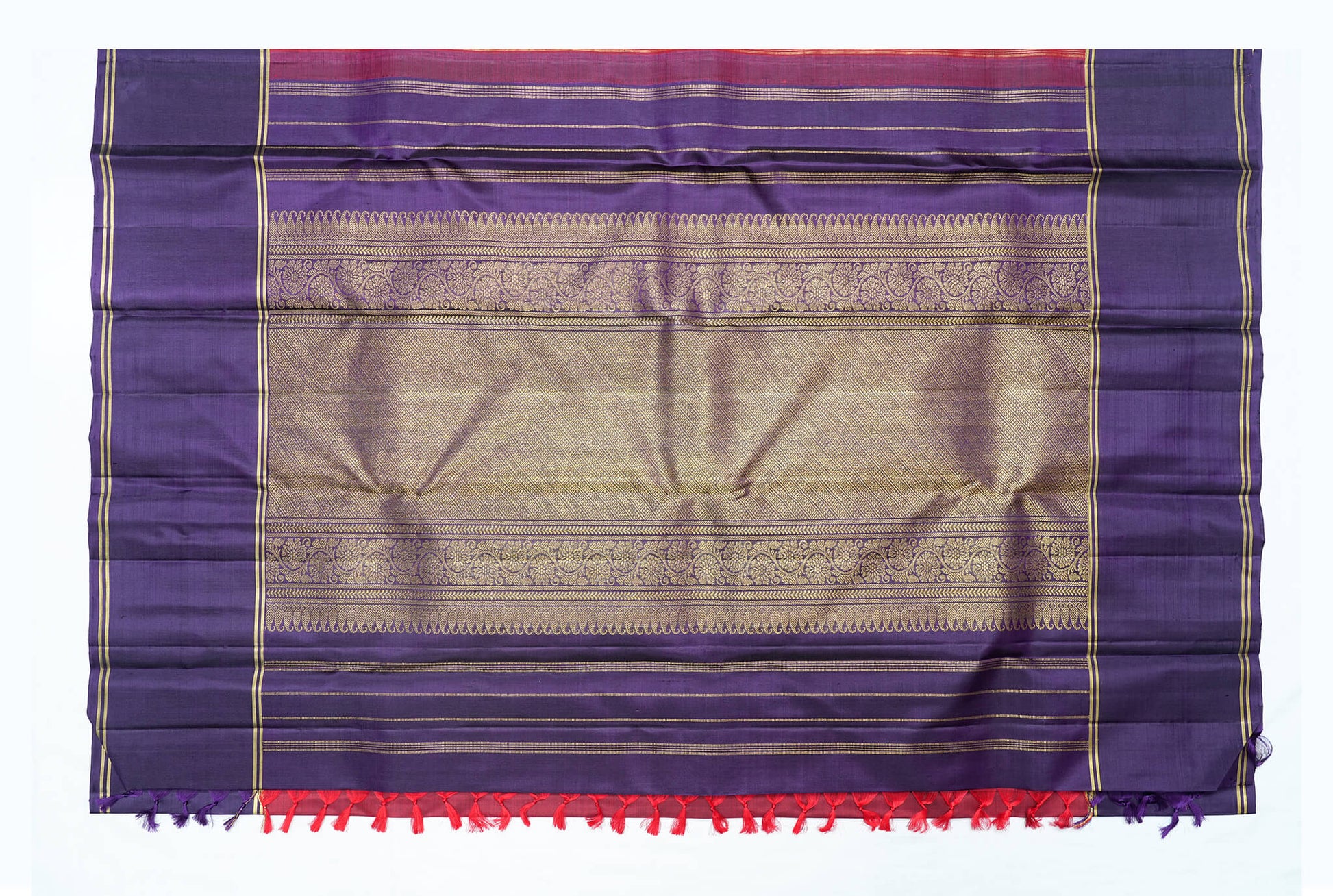 - Border dark purple double line border fancy golden zari colour pallu