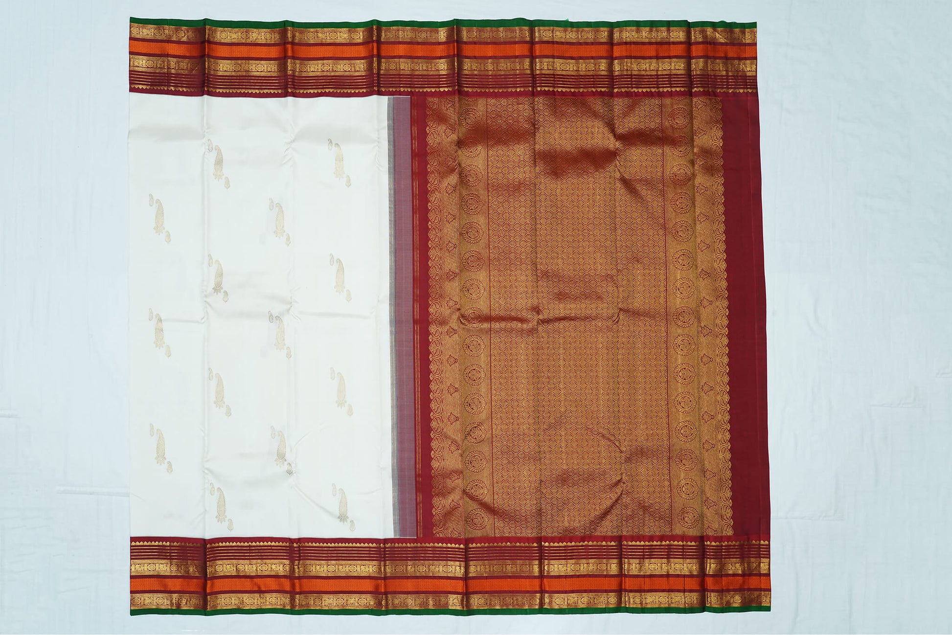 - Body features small golden circular motifs (buttas), likely floral or annam-style.