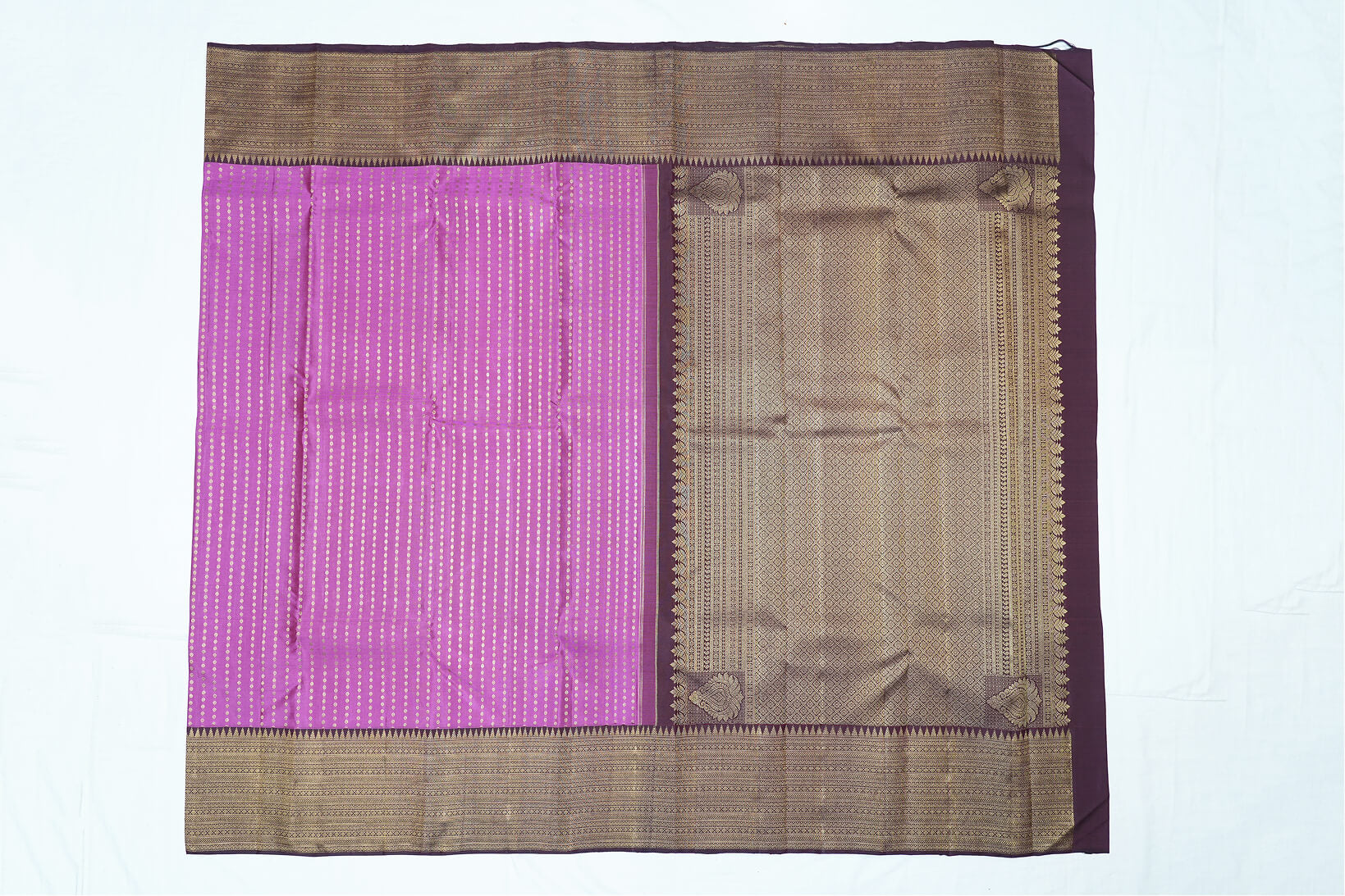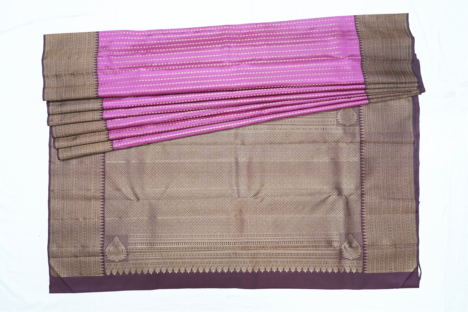 Kanchipuram Pure Silk Saree – Onion Pink with Brown Border